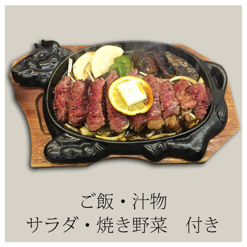 お一人様サイズの鉄板を使い、特選松阪牛ロース肉を焼きながらお召し上がりいただけます。
